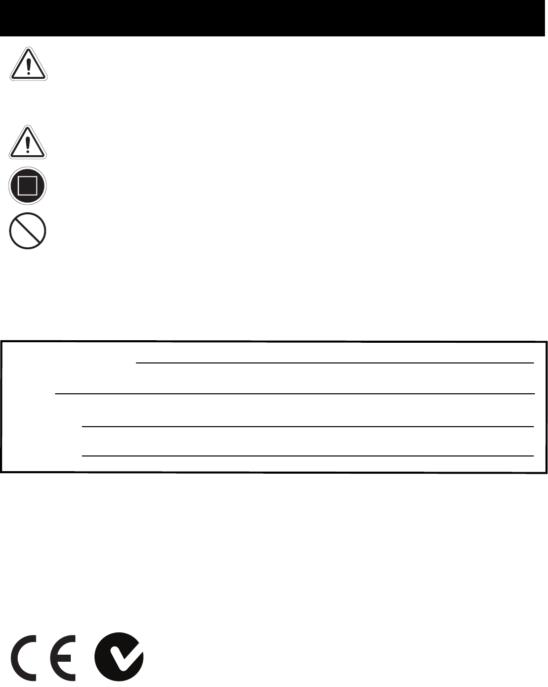 any circumstances. Performing a prohibited action can cause personal injury and/or equipment